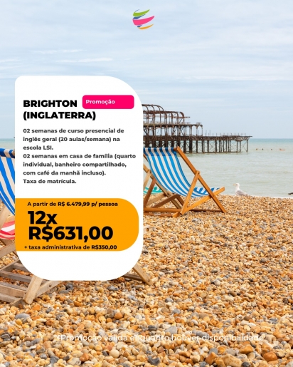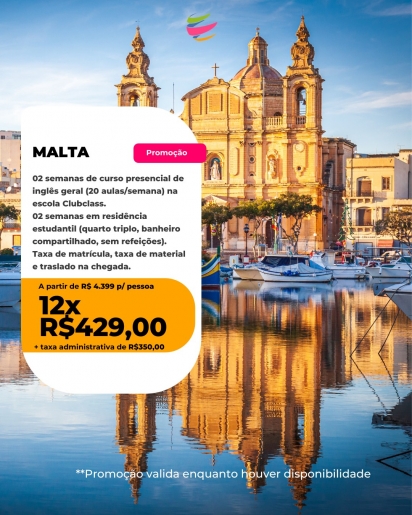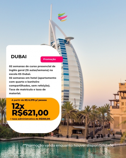 02 semanas de curso presencial de espanhol intensivo (20 aulas por semana) na escola Expanish + taxa de material + 02 semanas de acomodação em apartamento estudantil em quarto e banheiro compartilhados e sem refeição. Embarque ? 16 de maio de 2026 / Retorno ? 31 de maio de 2026